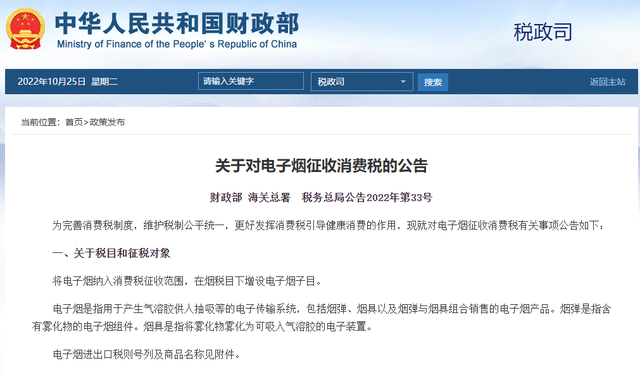 關(guān)于對電子煙征收消費(fèi)稅的公告
