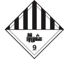 對瓦特小時的額定值不超過100Wh的移動電源(鋰離子電池組),如符合聯(lián)合國《關于危險貨物運輸的建議書 規(guī)章范本》(第20修訂版)第3.3章188特殊條款等相關規(guī)定可免除標簽的要求。對瓦特小時的額定值大于100Wh的移動電源(鋰離子電池組),其運輸包裝上應加貼下圖中9A號危險性運輸警示標簽。