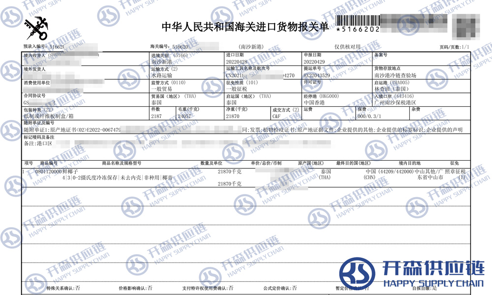 【本文結語】 上述就是泰國鮮椰子進口清關報關代理服務【經(jīng)典案例】的全部內(nèi)容,希望能對您有所幫助,如有水果進口報關上任何疑問及問題可隨時在線聯(lián)系我們或撥打 18002611553,開森供應鏈擁有豐富的水果進口報關操作經(jīng)驗及案例,10余年進口經(jīng)驗為您所用,各類進口疑難都能為您一一解答及協(xié)助快速處理解決!